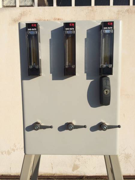 Les débitmètres sont pneumatique et pourvus de vannes d’arrêt.