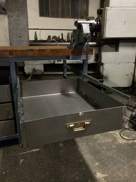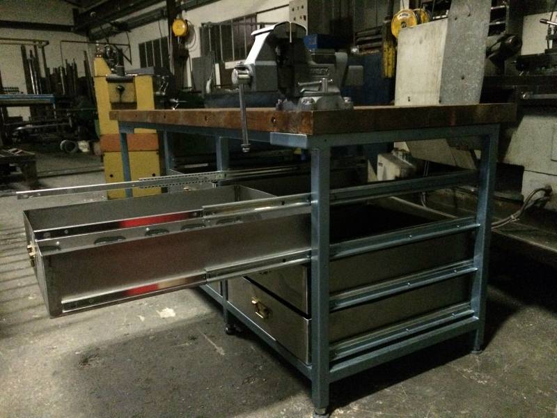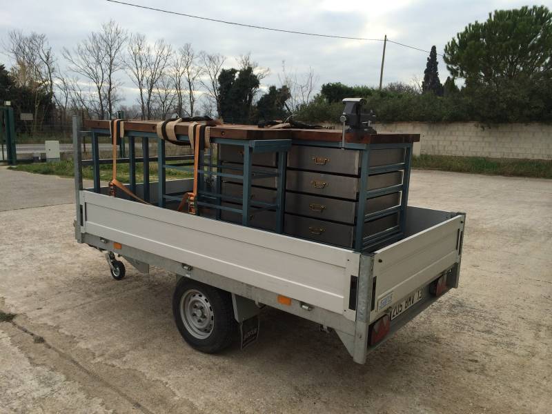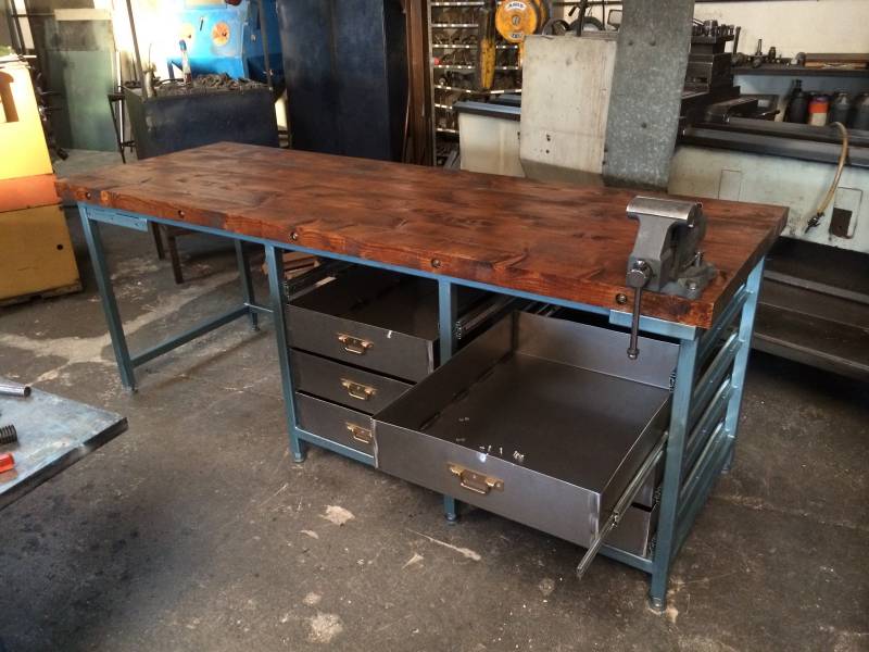 Nous lui confectionnons donc la structure de cet établi en tubes carré de 40 et en épaisseur 3 millimètres. Le plateau est en bois en traverse d'épaisseur 60 millimètres.