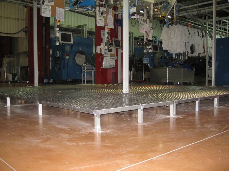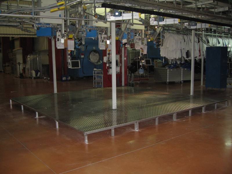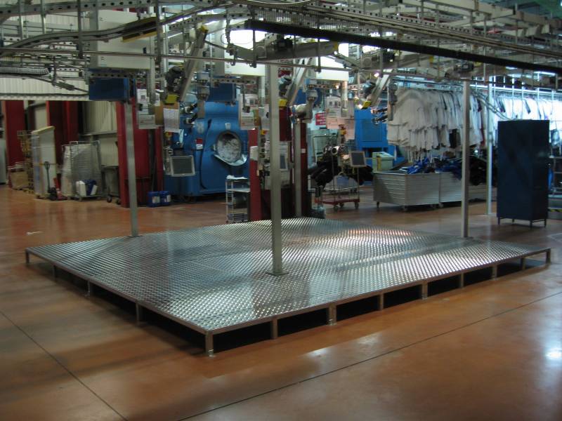Notre client se trouvant sur Marseille dans une zone industrielle nous à demandé de bien vouloir lui étudier puis lui fabriquer une estrade afin de surélever les opérateurs par rapport à leurs postes de travail afin d'atténuer le mal au dos en fin de journée q'une position inadapté et inconfortable procurait.