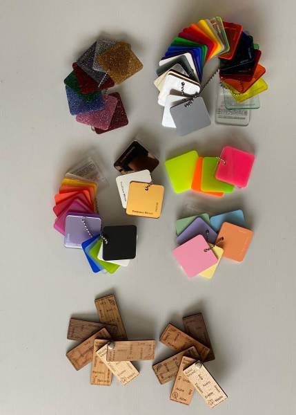 Nos dernières réalisations en découpe laser sur du PMMA en noir opaque brillant.