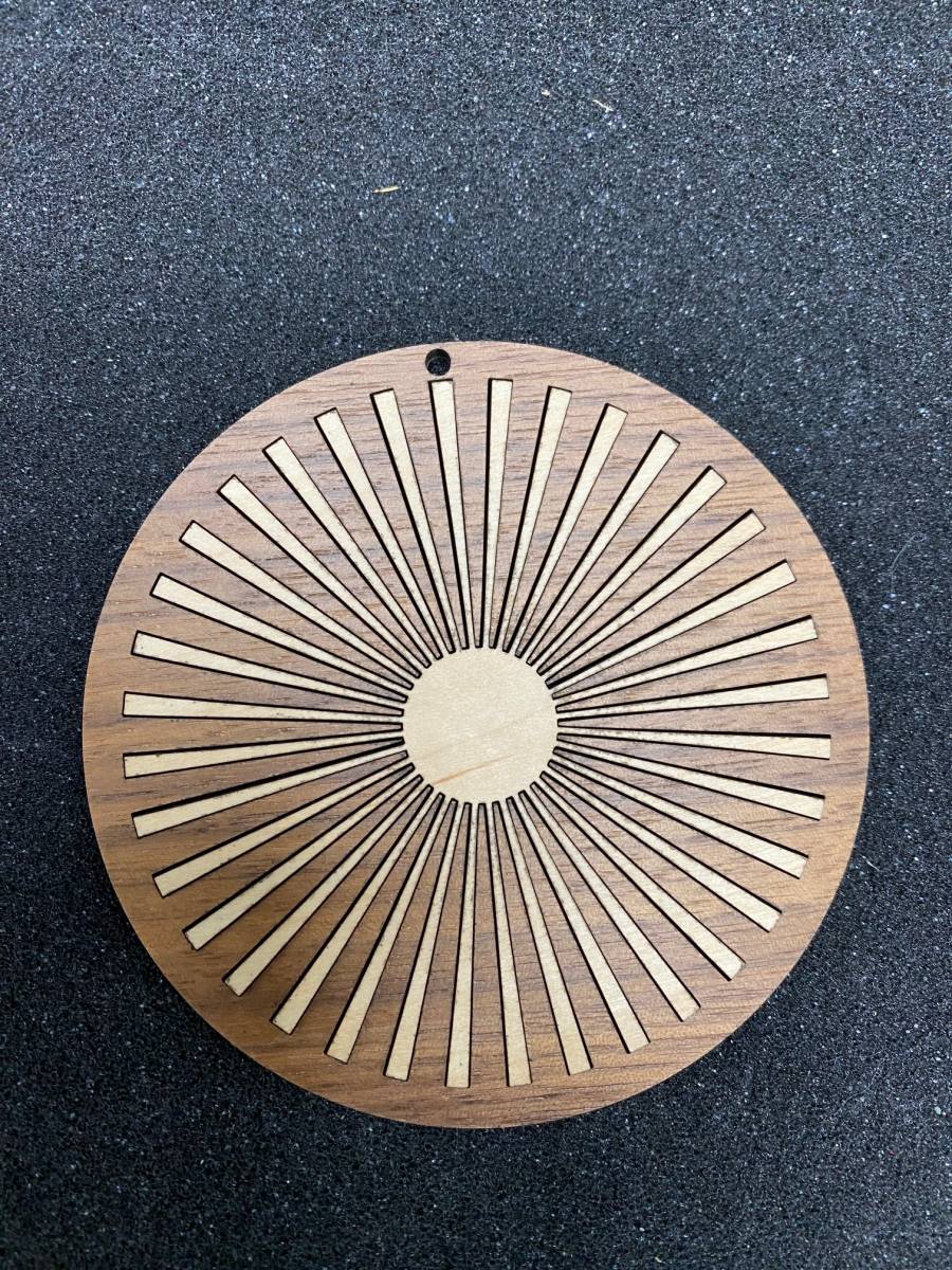 La pièce est composée de plusieurs éléments. Une base circulaire ajourée, associée à un motif central formé de fines lamelles disposées de manière radiale. L’ensemble a été pensé pour pouvoir être démonté puis réassemblé, volontairement, afin de bien comprendre la conception et la logique d’assemblage.