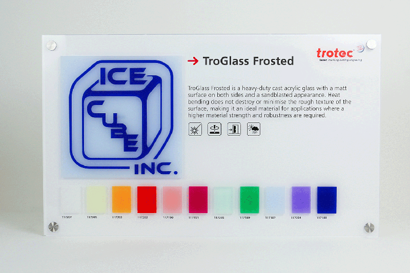 TroGlass Frosted est un PMMA coulé robuste qui a la caractéristique d’avoir ses deux surfaces rugueuses et mates («finition sablée»). Cette finition particulièrement soignée