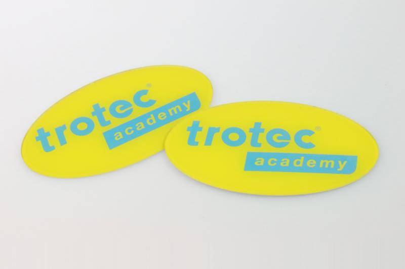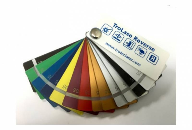 Le TroLase Reverse est constitué d'un PMMA transparent sur lequel a été déposé un film de couleur sur la face arrière. La gravure de la face arrière, puis l'application d'une peinture permettent d'obtenir une finition particulièrement soignée.