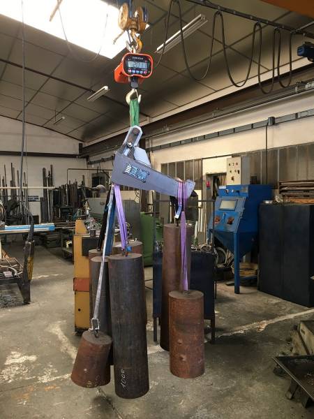 Notre client nous à demandé une épreuve de traction avec un coefficient de 10, pour plus de sécurité nous l'augmentons jusqu'à un multiple de 14 car le test est en statique et il faut tenir compte du travail en charge, le peson affiche 2011 kilogrammes.