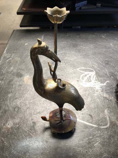 Après l'assemblage, effectué sans encombre, un nettoyage et un polissage minutieux est nécessaire afin d'essayer d’harmoniser la patine existante et la soudure ainsi réalisée le plus possible, le résultat fût conforme à l’attente de notre client.